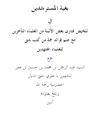 سیدعبدالرحمن بن محمد بن حسین بن عمر مشهور به علوی حضرمی در کتابش (بغیة المسترشدین )که خلاصه ایست از فتاوای علمای مذاهب اربعه در باب توسل می گوید :