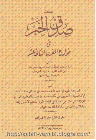 شریف عبد الله بن شریف حسن ( از شرفای حجاز درابتدای ظهور وهابیت) در کتابش (صدق الخبر فی خوارج القرن الثانی عشر) که به نمایاندن تشابهات وهابیت و خوارج و همچنین به بررسی تاریخ وهابیت پرداخته است در وقایع سال١٢٢١ هجری می نویسد :