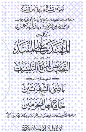 توضیحی در باره کتاب : کتاب المهند (نام اصلی کتاب که به زبان اردو بوده است )هنگامی نوشته شد که علمای مذاهب اربعه در حجاز از علمای دیوبند سؤال کردند که آیا شما وهابی هستید یا سنی؟ بدین منظور 24 پرسش اعتقادی را برای آنان طرح کردند. مولوی سهارنپوری به این پرسشها پاسخ داد و نوشت که ما اهلسنّت و جماعتیم و در برخی موارد، با آنچه در نامههای شما از عقاید وهابیت شمرده شده است، مخالفیم. ایشان این جوابیه را به امضای علمای هند رساند و به حجاز فرستاد و پس از دریافت آن، علمای اهلسنّت چهار مذهب در عربستان، الأزهر مصر، سوریه و عراق بر آن صحه گذاشتند و تأیید کردند. (عقاید اهلسنّت و جماعت در رد وهابیت و بدعت، مقدمه مترجم، ص 1.)