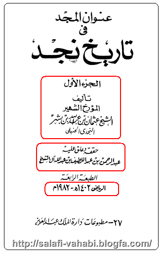 نویسنده وهابی ابن بشر در کتابش (عنوان المجد) در وقایع سال 1220 می گوید: