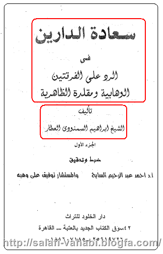 آنگاه که به مصادر تاریخی ونوشته های بزرگان اهل سنت نگاه می کنیم متوجه میشویم که گروههای تکفیری وهابی دقیقا همان دیدگاه ونظر پیروان جاهل وخشک محمد ابن عبد الوهاب را در زمان خودش دارند : از جمله : شیخ ابراهيم بن عثمان سمنودي ازهري (استاد الازهر مصر)در کتاب معروفشان «سعادة الدارين في الرد الفرقتين الوهابية و مقلّدة الظاهرية» که در معرفی وهابیت تألیف کرده اند. محمد بن عبدالوهاب و پیروانش را اینگونه معرفی می کنند: فکان یقول لهم :انما أدعوکم الی التوحید و ترک الشرک بالله تعالی و یزین لهم القول وهم بوادی فی غایة الجهل .لا یعرفون شیئاً من أمور الدین. فاستحسنوا ما جائهم به.کان یقول لهم تارة :انی أدعوکم الی الدین . و تارةیقول: إنی أجدد للناس دینهم، لأن جمیع من تحت السبع الطباق مشرک علی الأطلاق ومن قتل مشرکاً.فله الجنة فتابعوه وصارت نفوسهم بهذا القول مطمئنة. فکان محمد بن عبدالوهاب المذکور بينهم، کالنبي في امته لايترکون شيئاً ممّا يقول، و لايفعلون شيئاً الاّ بأمره و یعظمونه غایة التعظیم، واذا قتلوا إنساناً أخذو ماله وأعطوا الامیر محمد بن سعود منه الخمس واقتسمو الباقی ترجمه : او (محمد بن عبد الوهاب)به مردم میگفت: من شما را به توحید و ترک شرک دعوت می کنم و سخنانش را برای انها زینت می داد. (اطرافیانش) در آن بیابان در اوج جهل بودند وهیچ آشنایی به امور دین نداشته هرچه را که به آنها می گفت صحیح می انگاشتند. او گاهی به آنها می گفت: من شما را به دین دعوت میکنم و گاهی می گفت: من برای مردم دینشان را تجدید میکنم ، چرا که تمام کسانی که زیر آسمان هستند کلا مشرکند.پس هر کس مشرکین را بکشد برای او بهشت مهیا است . مردم هم از او تبعیت کرده و با سخنان او دلهایشان محکم می شد. محمدبن عبدالوهاب در بين پيروانش همانند پيامبردر بين امتش بود و لذا هرگز اوامر او را ترک نميکردند و هیچ کاري را جز به دستور او انجام نميدادند. هر گاه شخصی را می کشتند ، خمس اموالش را به محمد بن سعود می دادند و مابقی را بین خودشان تقسیم می کردند